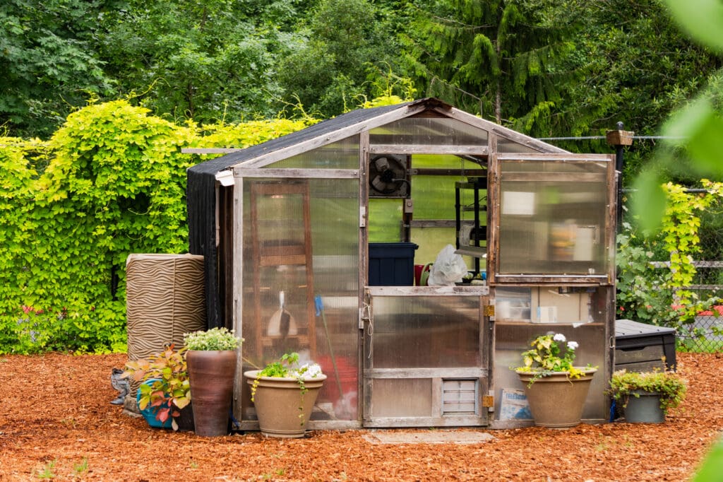 The garden contains a variety of garden bed types, including raised beds, container gardens, and hügelkultur—a type of mounded bed that uses rotting wood and other matter to create a self-composting ecosystem.